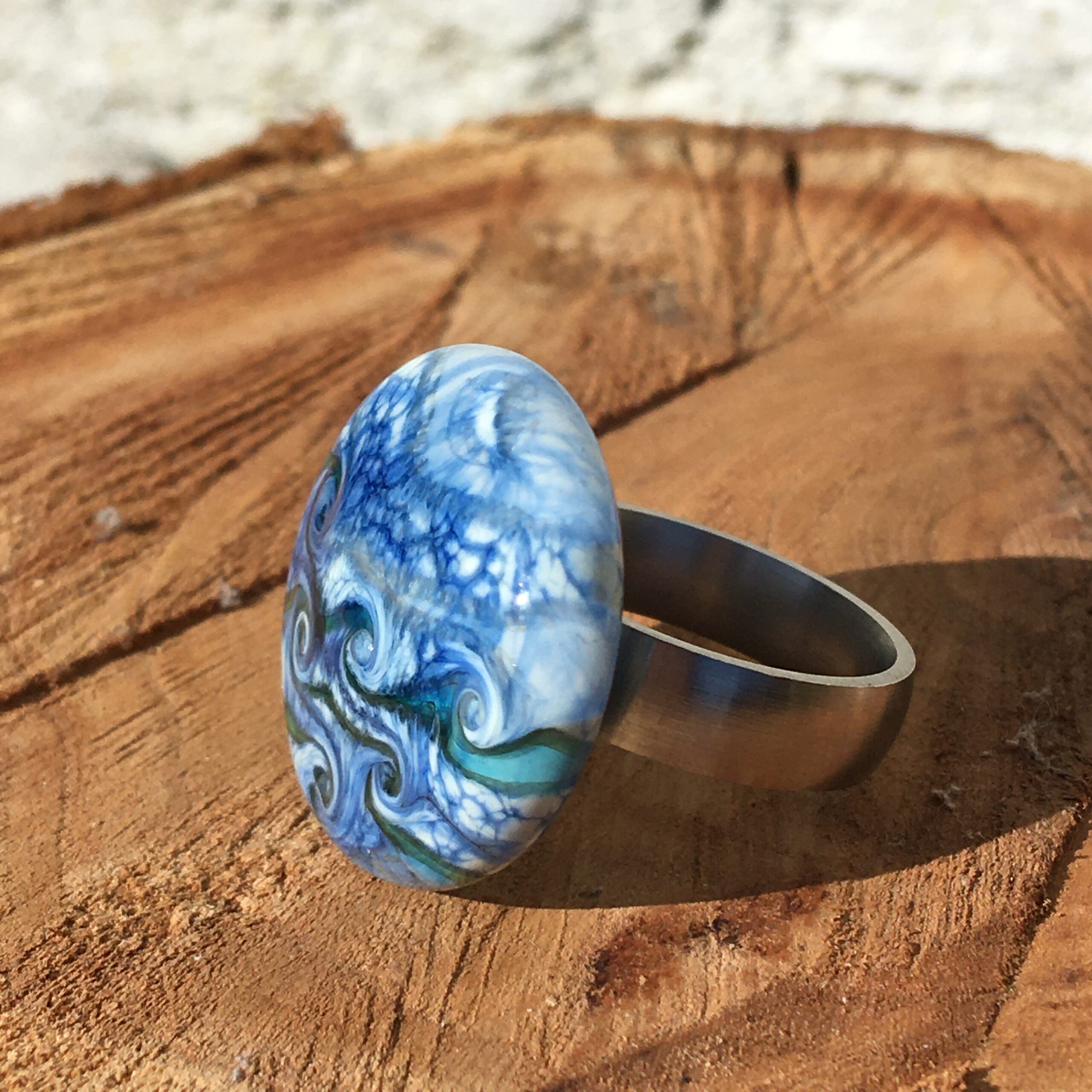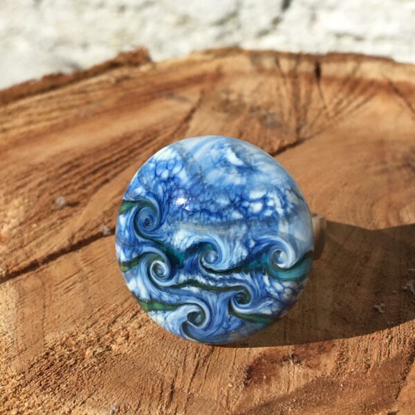Glastop gemaakt met mijn favoriete kleur; avorio lapis. Dit sieraad beeldt de zee uit, zie je de golven?