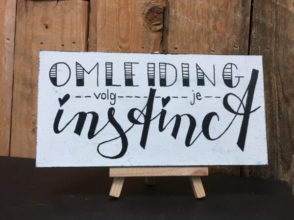 Leuke quote op een wit wandbordje. De tekst is gemaakt in zwart. Het bordje is met matte lak afgewerkt.